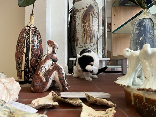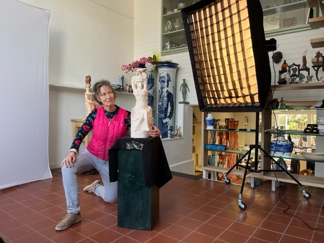 Het atelier is omgetoverd tot fotostudio! De 12 beelden zijn goed gefotografeerd. Het resultaat is volgende week hier te zien én op mijn site.